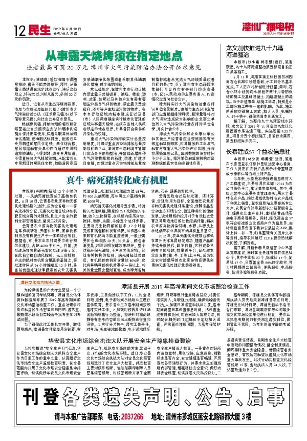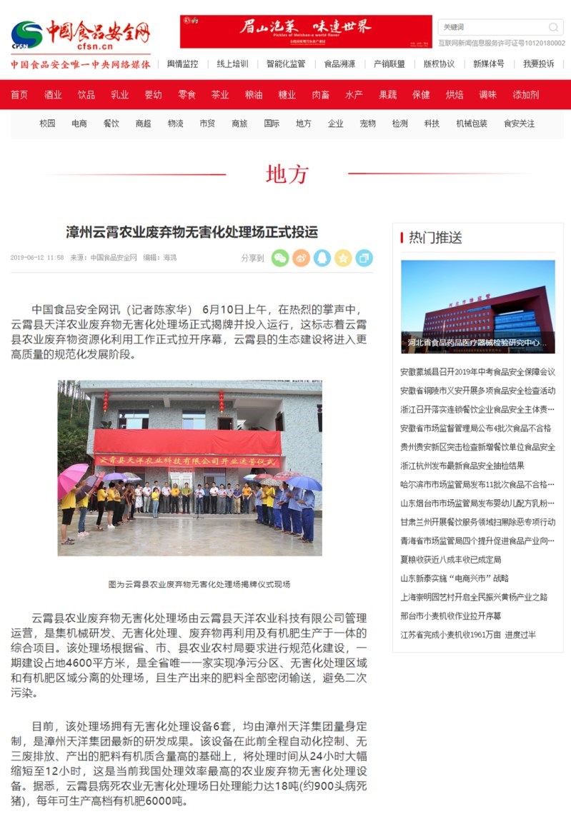 漳州云霄農(nóng)業(yè)廢棄物無害化處理場正式投運 2019年06月13日